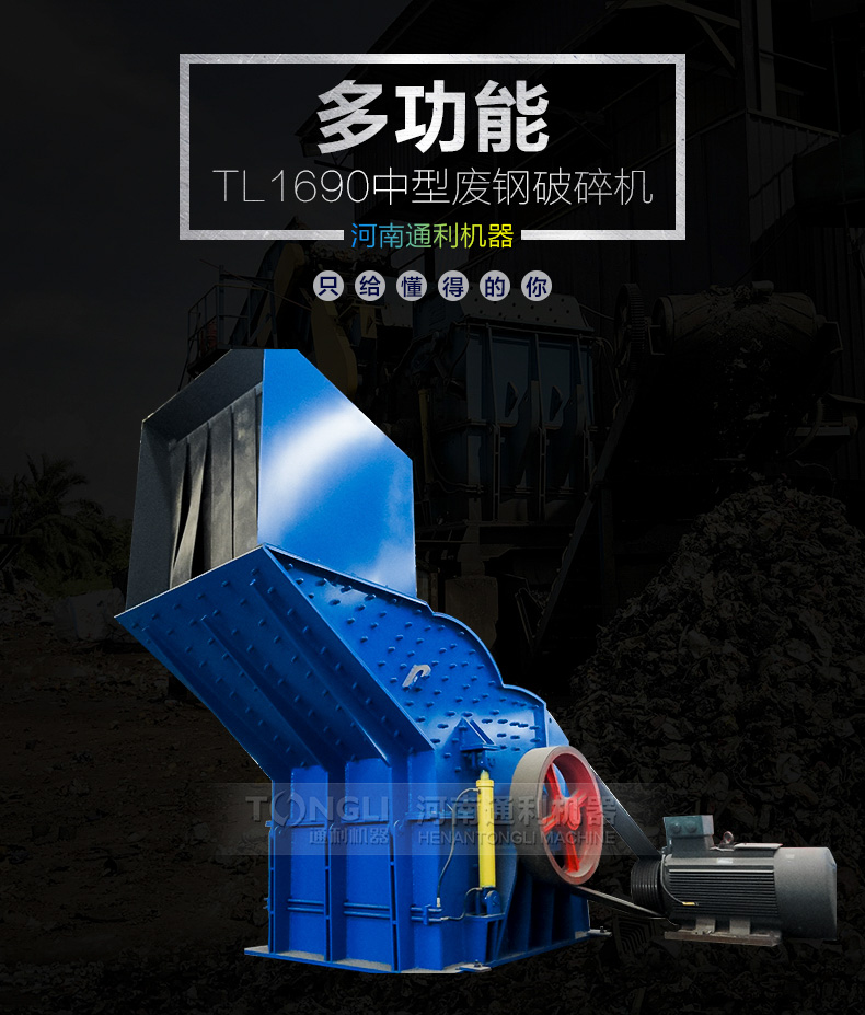 河南通利1690金屬破碎機(jī)由主機(jī)一臺(tái),生產(chǎn)線一條,磁設(shè)備一臺(tái),輸送機(jī)一臺(tái),電機(jī)一臺(tái)組成,廠家可為您提供系列化的金屬破碎機(jī)和整個(gè)破碎工廠的工藝裝配配置。用于破碎輕薄料如汽車外殼混合廢金屬,包括金屬打包塊的破碎,機(jī)器通過(guò)不斷、化以及經(jīng)驗(yàn)的積累,掌握了設(shè)計(jì)和制造金屬破碎機(jī)的技術(shù)訣竅,從而設(shè)備長(zhǎng)期可靠地低成本運(yùn)行。