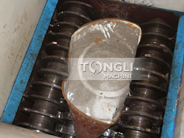 Q:用撕碎機(jī)把廢舊油漆桶撕碎后,油漆桶物料是什么樣子?